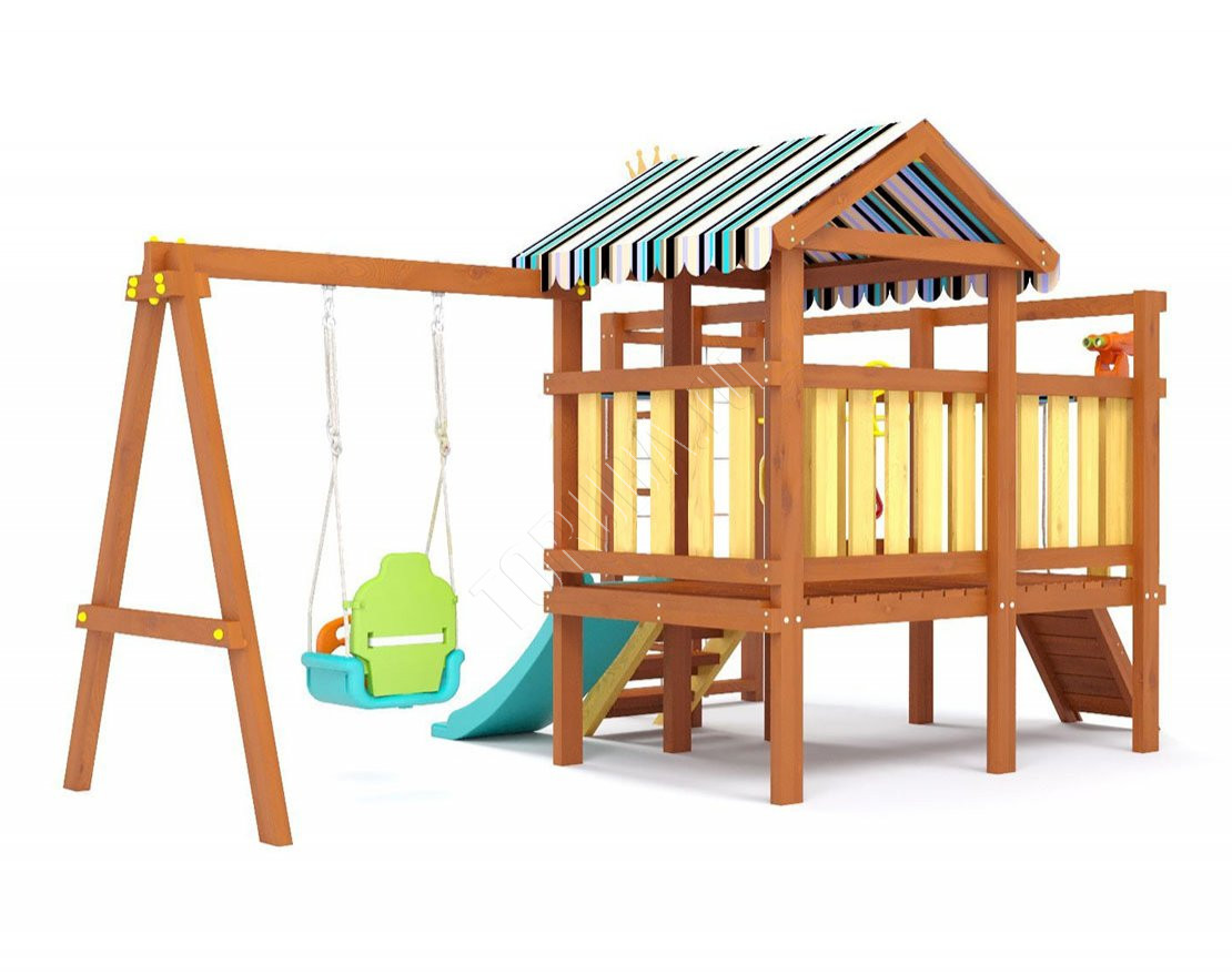 Площадка Финиси 7 предназначена для активных и безопасных игр вашего малыша. Рассчитанный на самых маленьких, детский городок включает оптимальный набор спортивных и игровых элементов, полезных не только для настроения, но и для здоровья. Например, занимаясь на турнике, малыш укрепит свой позвоночник – каждый элемент детской площадки предназначен для физического развития ваших деток. Все детские уличные комплексы созданы с теплом и любовью по самым высочайшим стандартам качества и ГОСТа. Используются только натуральные материалы и 100% безопасные конструкции!