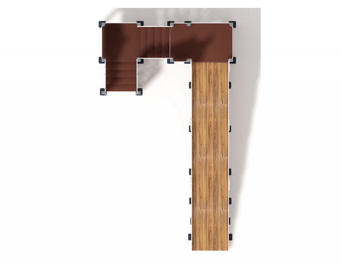 Лестница сборная конструкция, которая состоит из двух сборных маршей, с переходной площадкой. Марш лестницы состоит из бортов, выполненных из влагостойкой фанеры толщиной не менее 24 мм и ступенек, выполненных из ламинированной анти-скользящей фанеры, толщиной не менее 18 мм, ширина 960 мм, высота 1000 мм. Марши поставляются в сборе в комплекте – 2 марша.