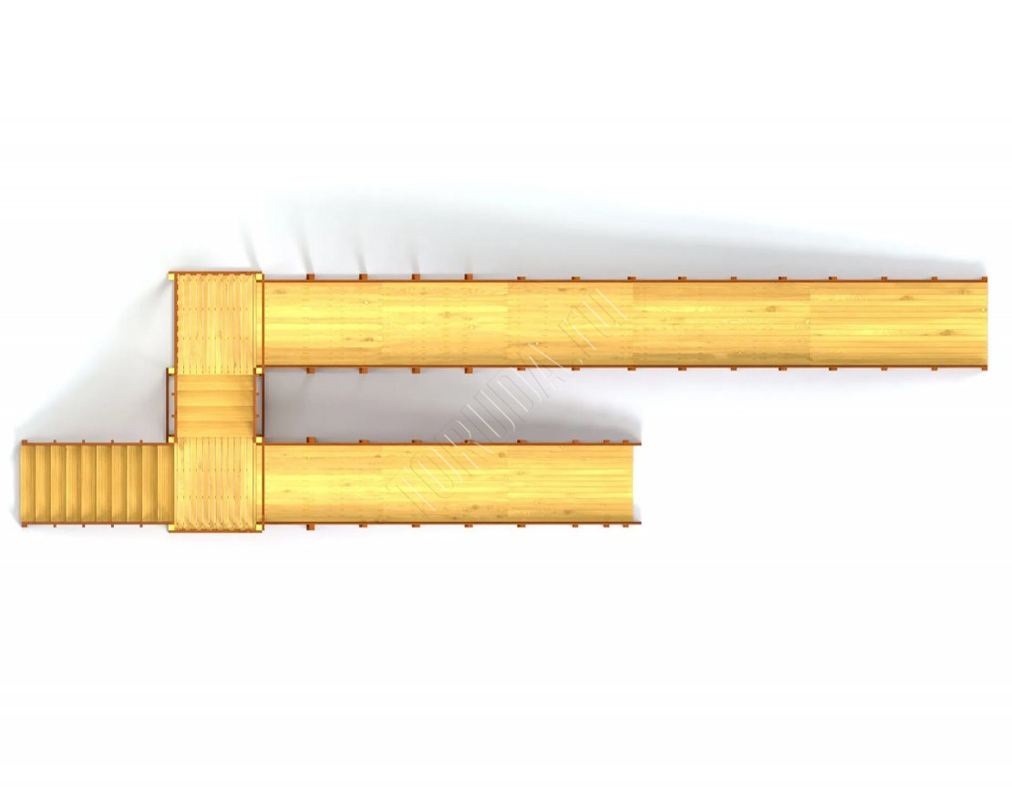Каркас модели сделан из надежного клееного бруса, который отлично выдерживает любые погодные условия, сохраняя безупречную геометрию на протяжении многих лет. Поверхность дополнительно защищена от осадков экологичным лакокрасочным покрытием с разрешающим сертификатом, допускающим применение состава для детских комплексов.