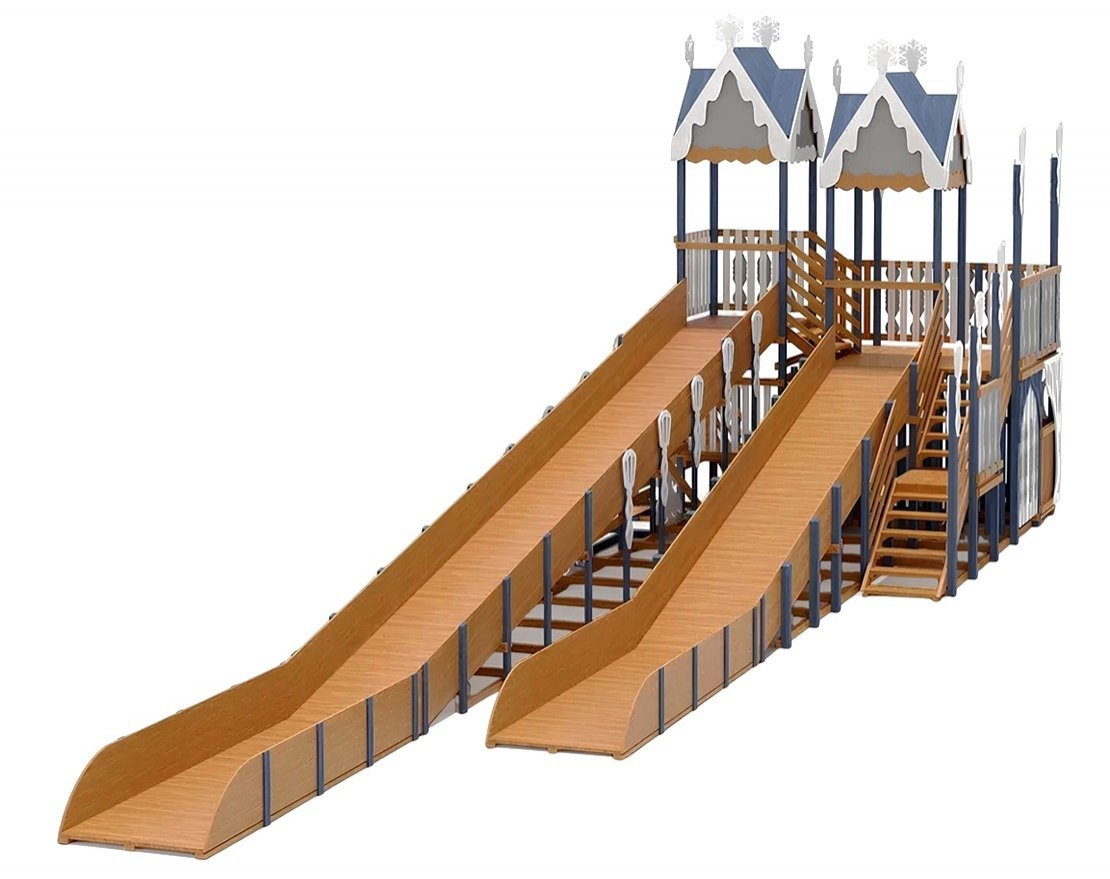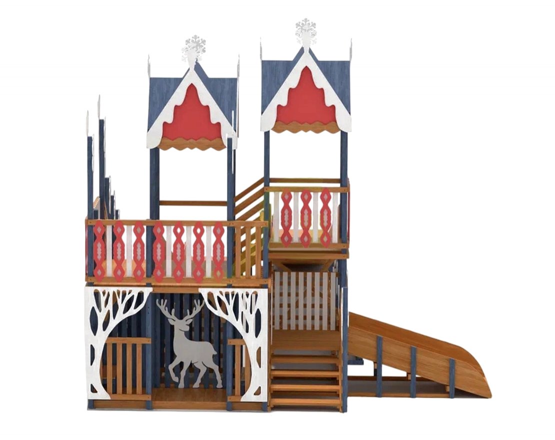 Эта горка — идеальное воплощение зимней сказки, которое станет украшением парка или вашего участка в морозное время года. Удивительный дизайн с множеством декоративных элементов создадут атмосферу настоящего зимнего волшебства.