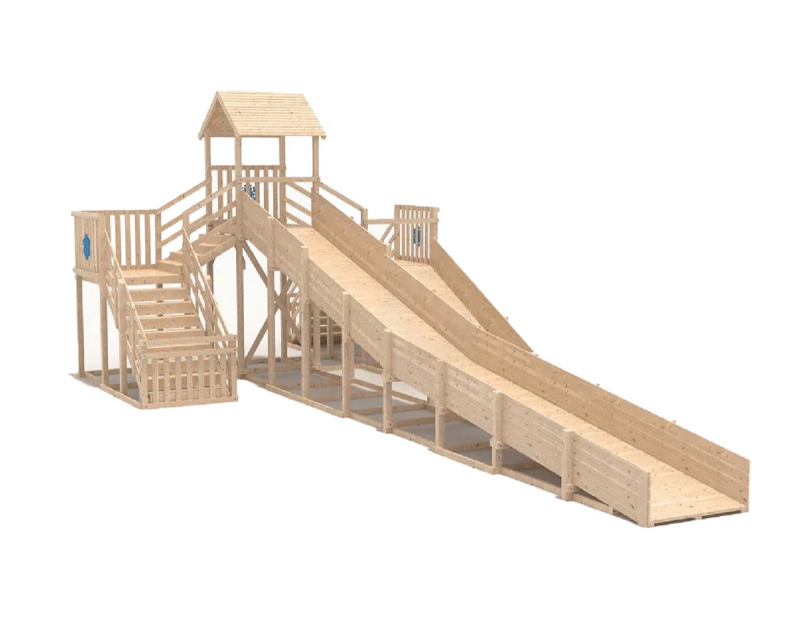 - Модуль безопасен для частного пользования. Конструкция оборудована бортиками, безопасными лестницами с перилами, усиленными балками. Имеется деревянная крыша.