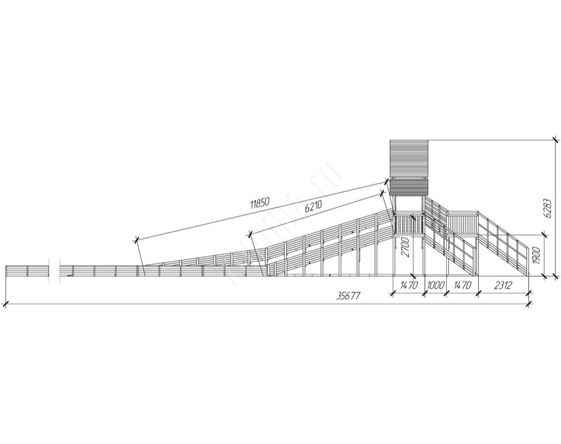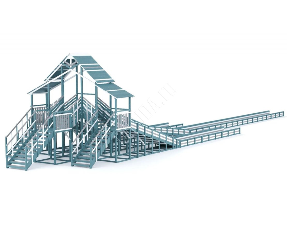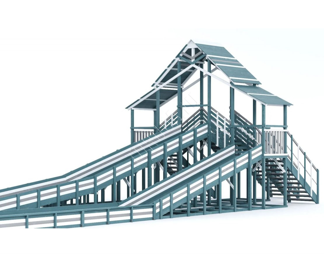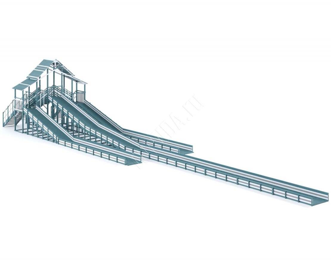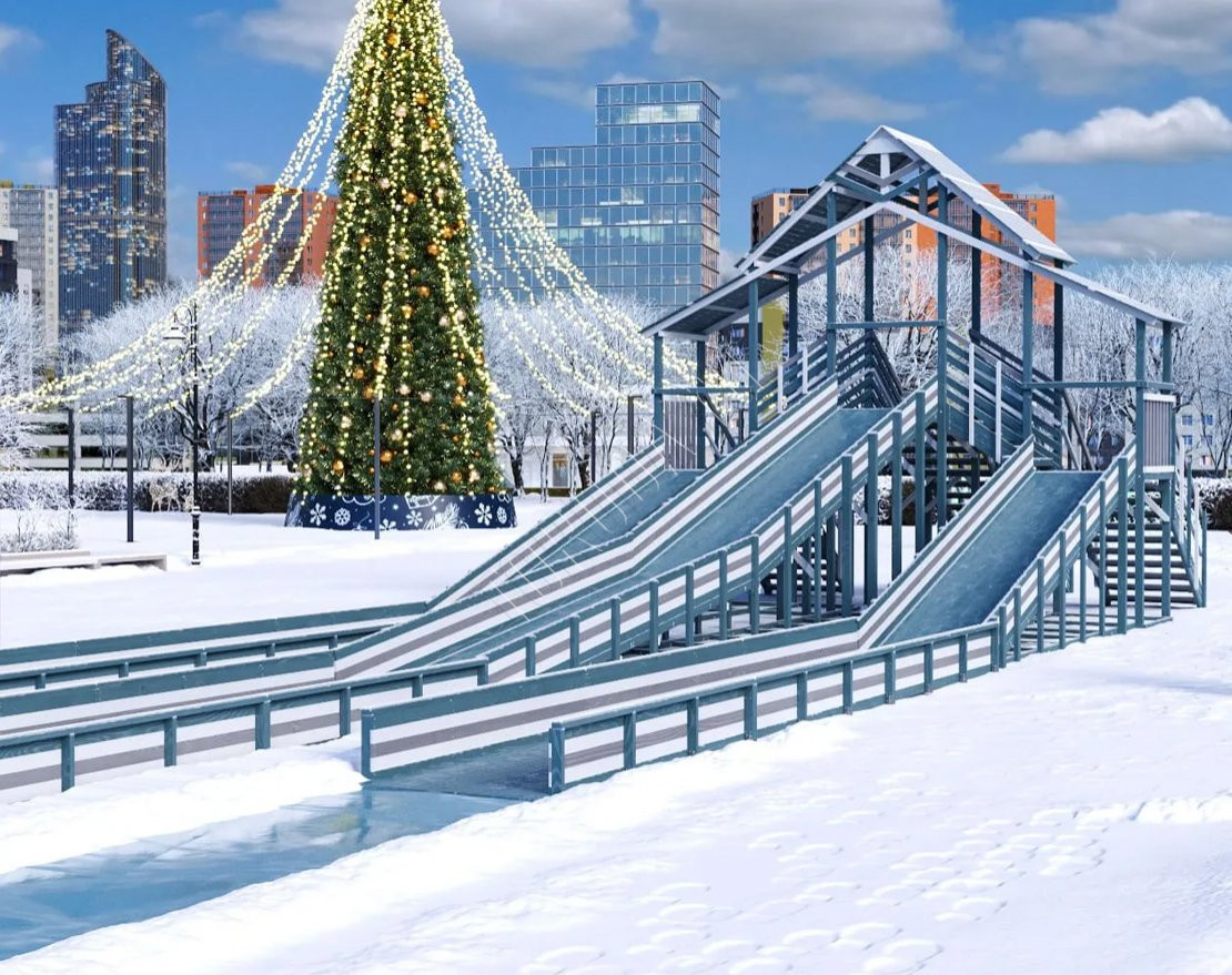 Три мощных ската длиной до 30 метров, которые превращают любую площадку в центр зимнего веселья! Прочная двухуровневая конструкция, широкие лестницы и высокие ограждения делают катание максимально безопасным.