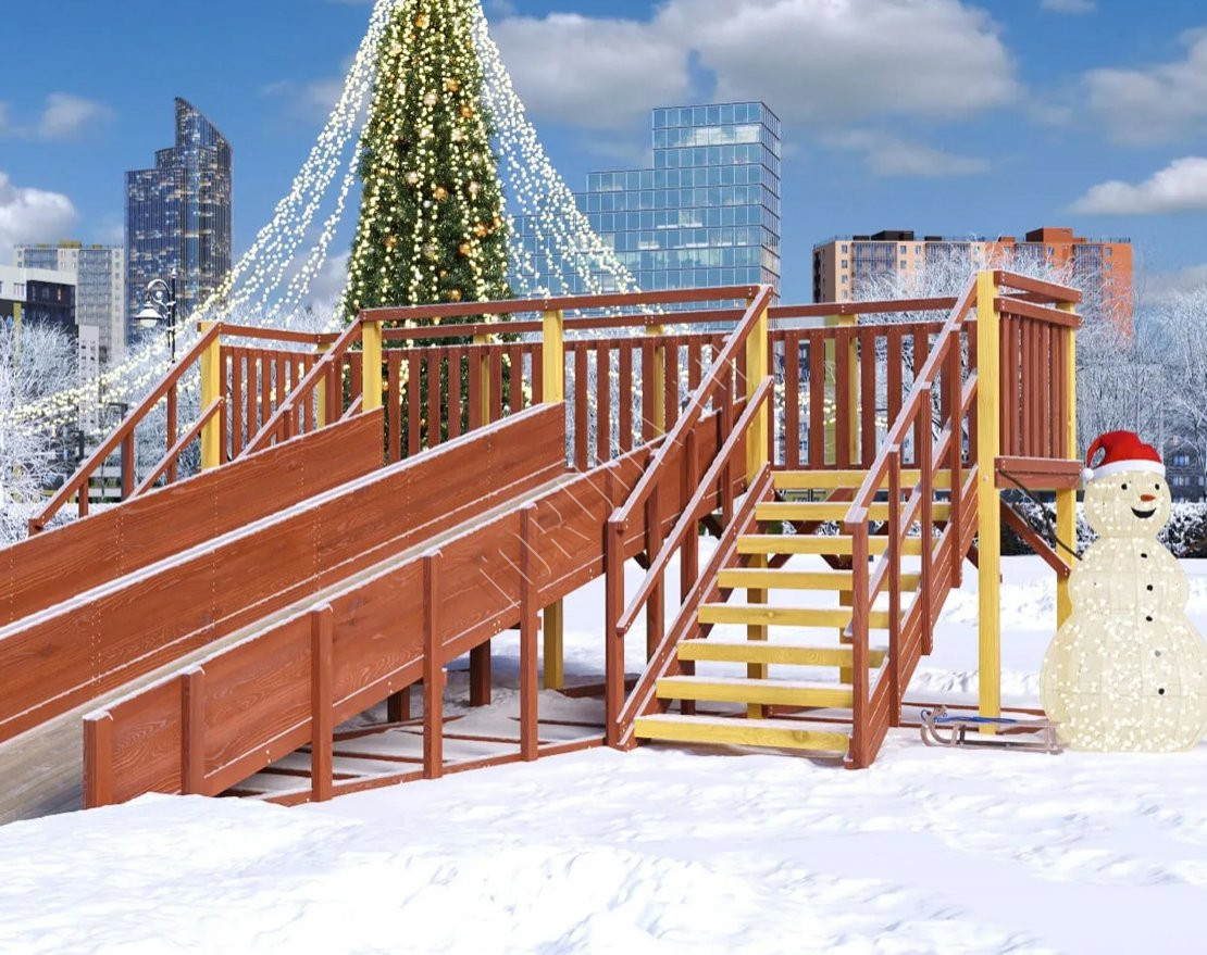 Зимняя горка имеет Декларацию о соответствии ТР ЕАЭС 038/2016 и может быть использована в общественных местах.