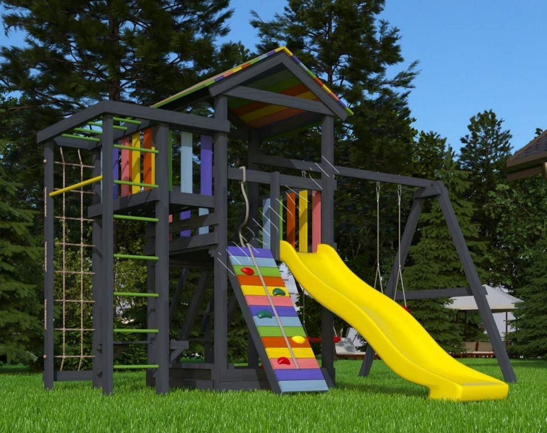 Детская площадка обладает довольно широким функционалом, предназначена для дачи, коттеджа.