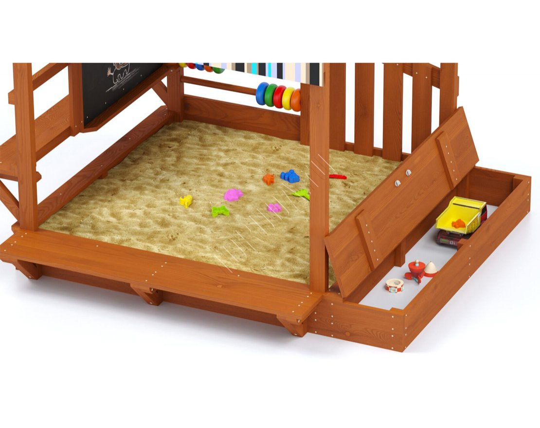 - Песочница – это отдельный элемент, который позволяет детям играть в песке и строить замки и башни. Лавочки на песочнице обеспечивают удобство и комфорт при игре.