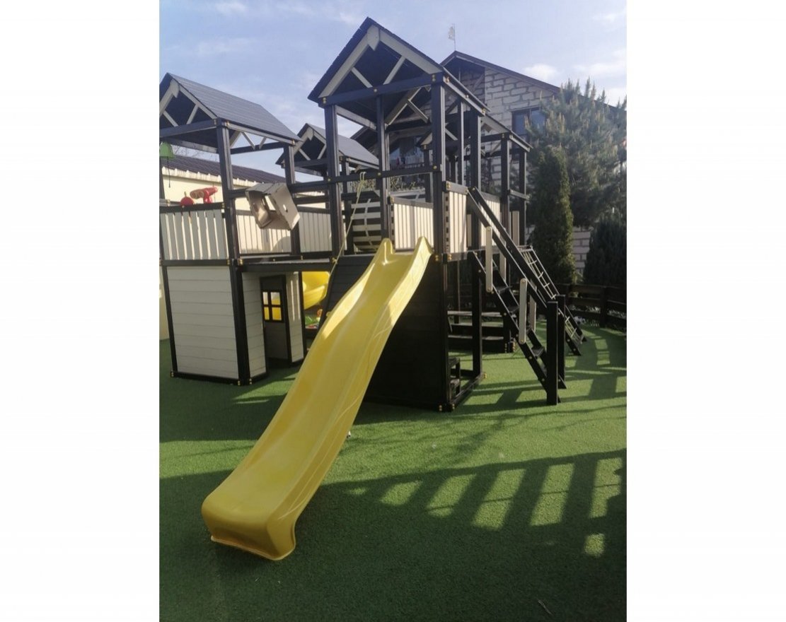 Изделие покрыто безопасной для детей высокоустойчивой пропиткой на водной основе, которая надежно защищает древесину от воздействия окружающей среды. Перила, скалодром и лестница производятся по системе "шип-паз".
