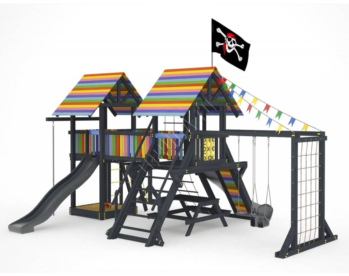Детская площадка обладает довольно широким функционалом, предназначена для дачи, коттеджа.