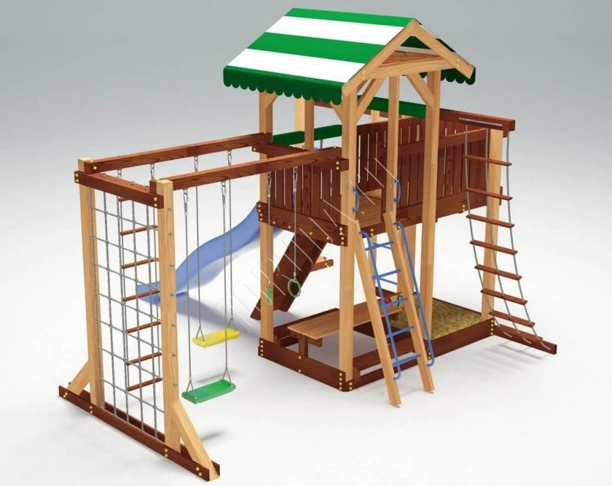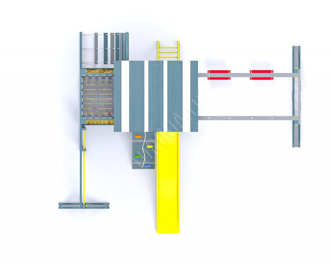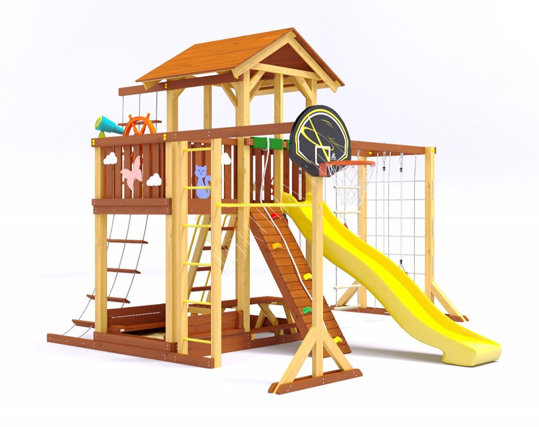 Площадка Парус 6 обладает довольно широким функционалом (который по желанию можно легко расширить). Детская площадка предназначена для дачи, коттеджа.
