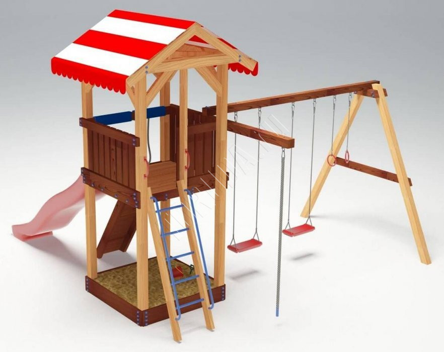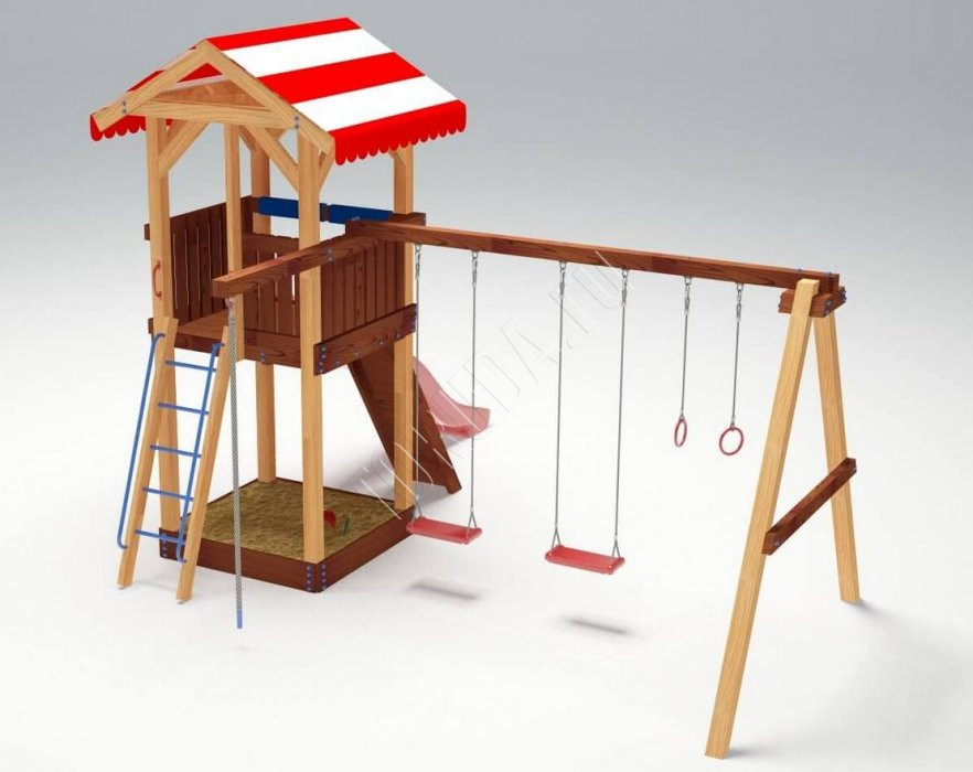 Площадка Парус 1 обладает довольно широким функционалом (который по желанию можно легко расширить). Детская площадка предназначена для дачи, коттеджа.