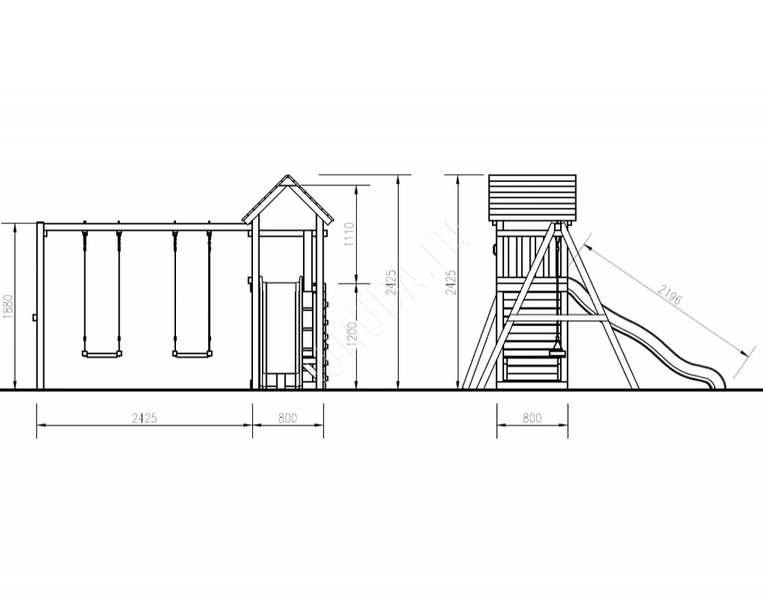 Комплексу не страшны палящее солнце и зимняя вьюга – он всепогодный. Необходимо только покрыть дерево краской с антисептиком.
