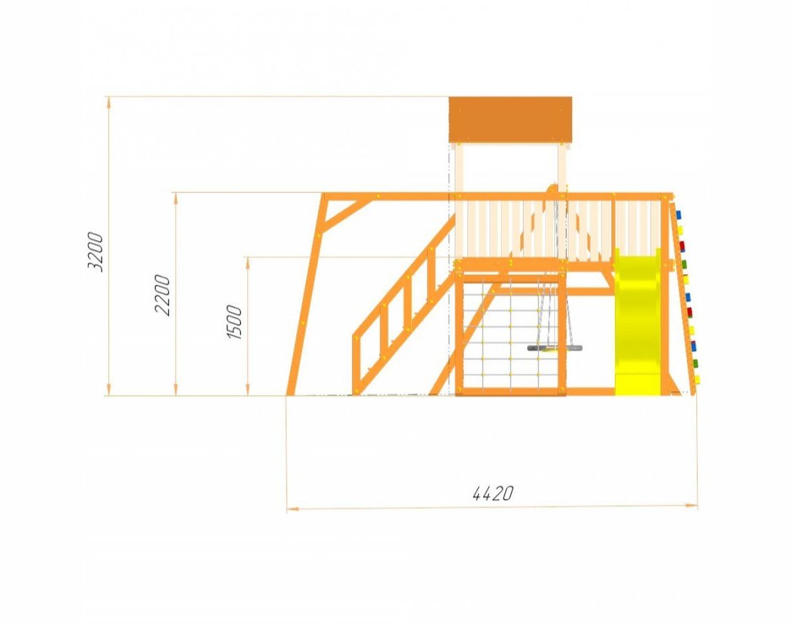 Детская площадка изготовлены в соответствии с ГОСТ Р 52168-2012. Опоры и несущие элементы изделия изготовлены из клееного бруса карельской сосны 90х90 мм, доска 45х90мм, 45х140мм, другие перекрытия 20х90мм доска, ограждение и иные элементы из массива сосны. Везде используется сухая доска.