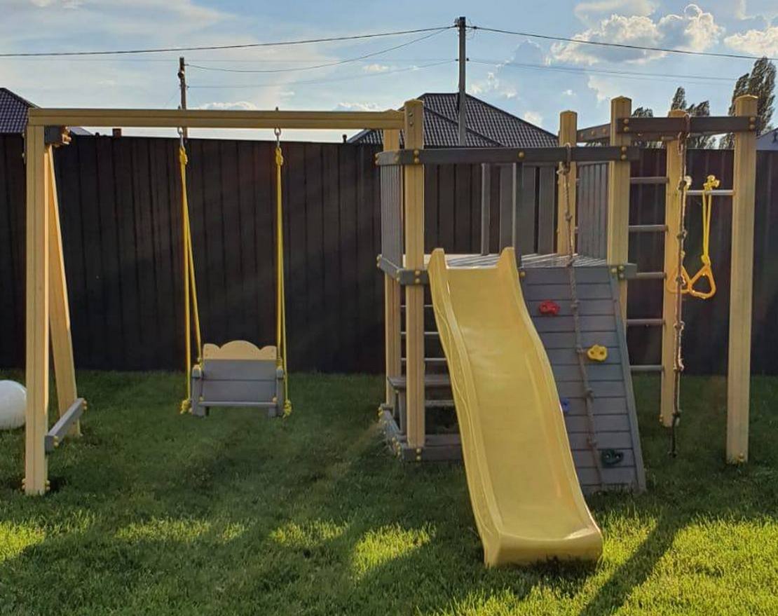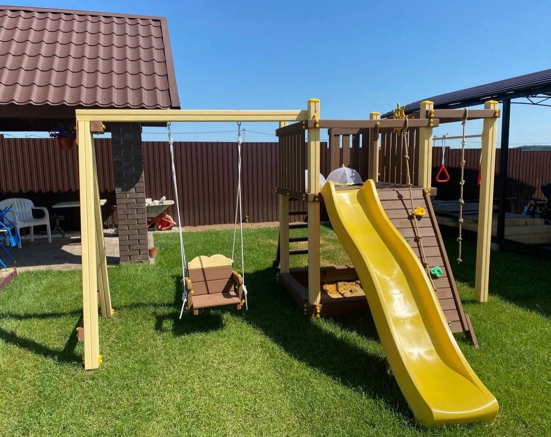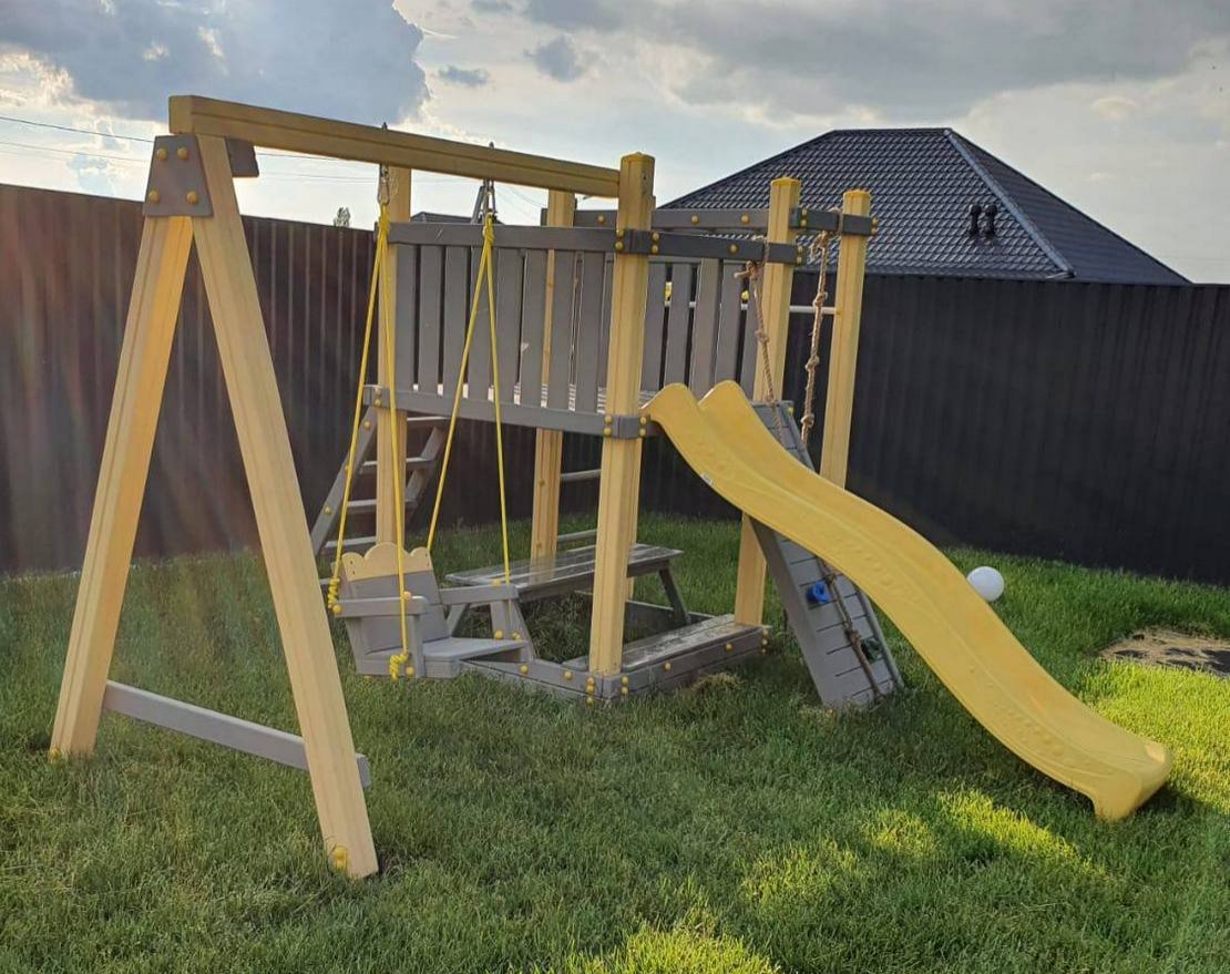 В данной модели (с доплатой) можно заменить качель на выбор (деревянная, гнездо).