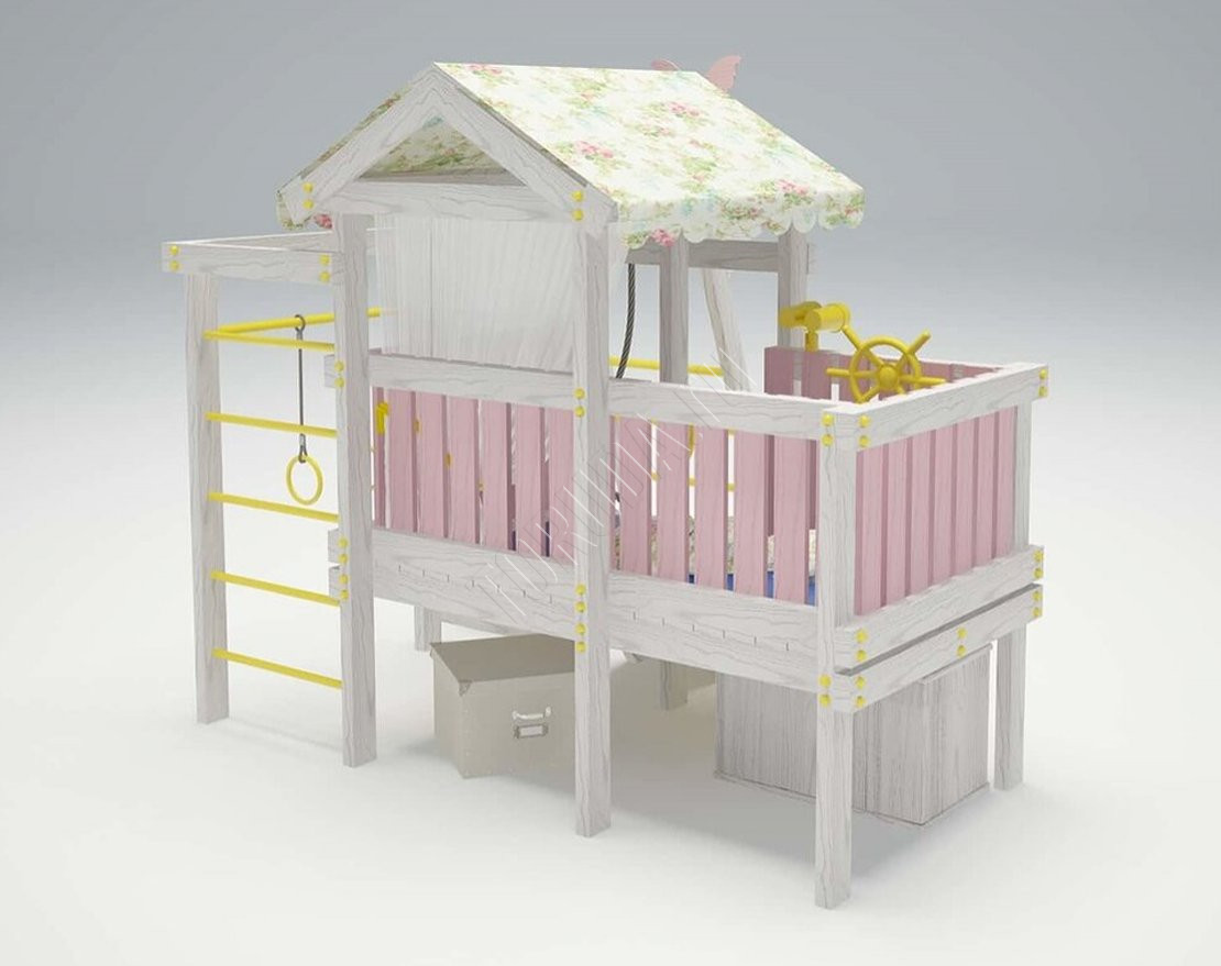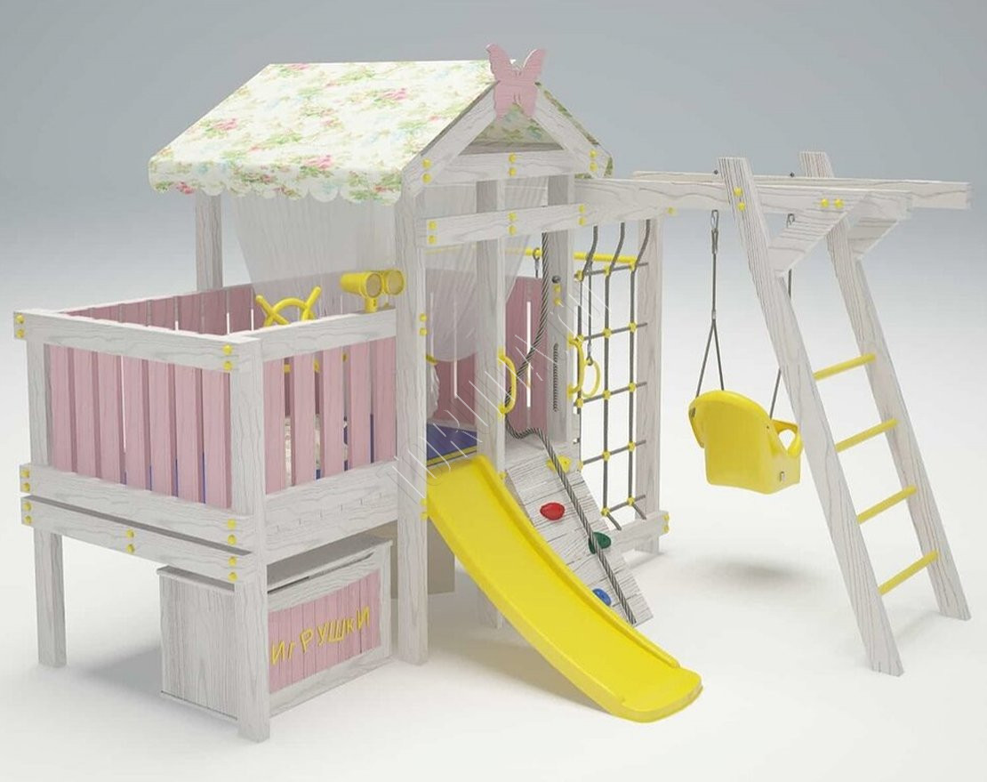 Эта игровая площадка разрабатывалась специально для загородного дома и квартиры. Комплекс интересный и безопасный для ваших детей.