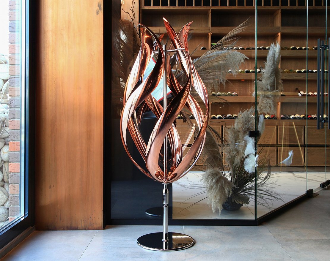 Бутон — это изысканная ветряная скульптура для помещения, которая создаёт атмосферу лёгкости и воздушности. Изготовленная из лёгких и прочных материалов, она напоминает изящный цветок, раскрывающийся в пространстве комнаты. Плавные изгибы и гармоничные формы скульптуры придают ей неповторимое очарование. Бутон становится не просто элементом декора, но и частью интерьера, гармонично сочетаясь с общим стилем помещения. Благодаря своей конструкции, скульптура реагирует на малейшие движения воздуха, создавая динамичные и завораживающие визуальные эффекты. Она превращает обычное пространство в арену для удивительного танца форм, меняя своё визуальное восприятие с каждым дуновением ветра. Бутон не только украшает интерьер, но и вносит в него элемент живой природы, напоминая о красоте и непредсказуемости мира вокруг нас. Эта скульптура станет настоящим украшением вашего дома, создавая уютную и гармоничную атмосферу.