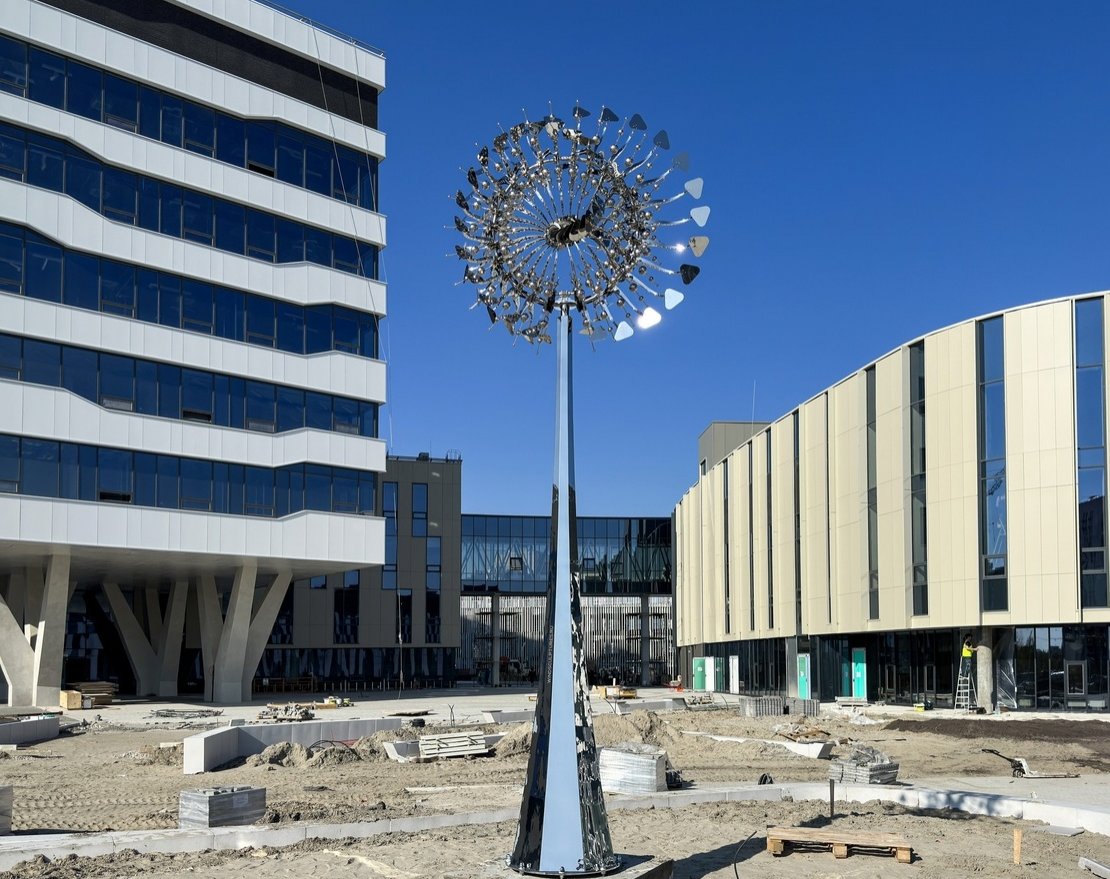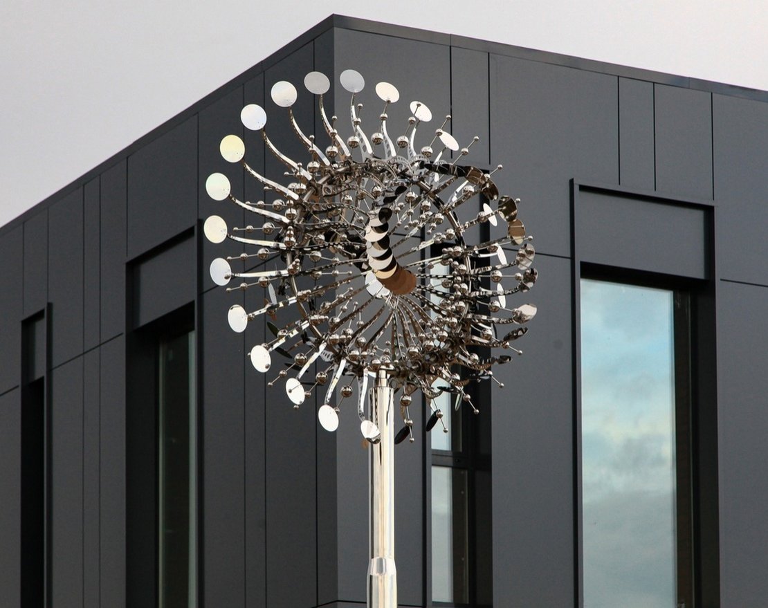 Скульптура Пульсар представляет собой уникальное произведение искусства, выполненное из высококачественной нержавеющей стали, которое своей формой отражает динамику и гармонию природы. Центральная часть скульптуры служит своеобразным ядром, от которого в разные стороны расходятся пластины, создавая эффект волнения и движения.