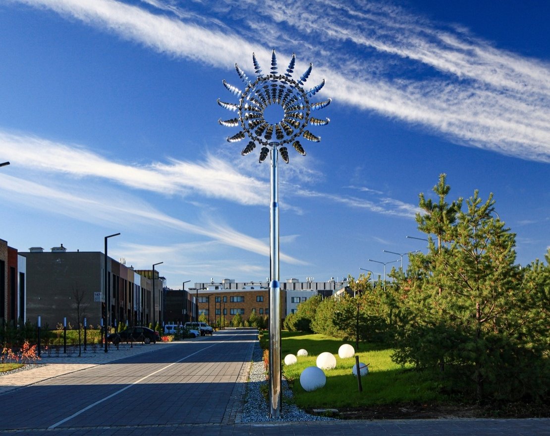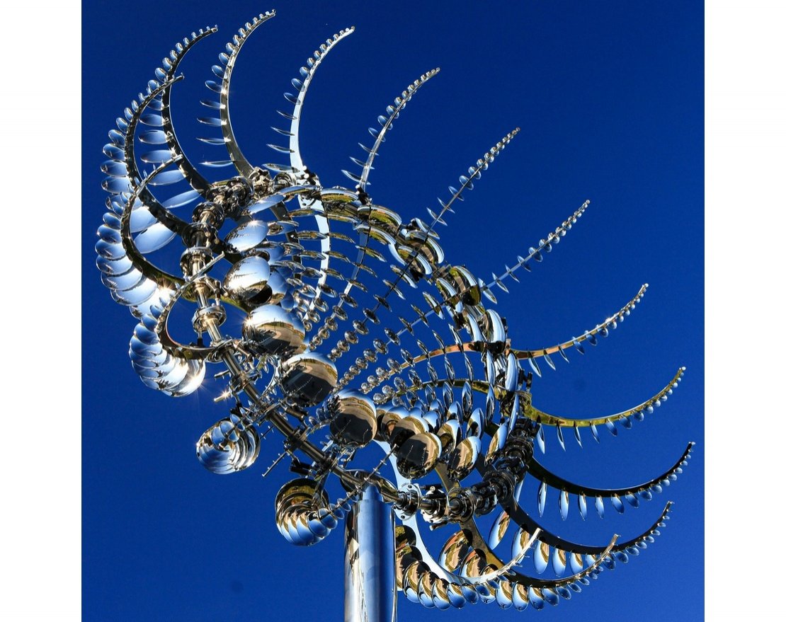 При каждом порыве ветра эта уникальная конструкция оживает, стальные элементы отражают свет, создавая игру бликов и теней, напоминающую морскую гладь. В зависимости от угла зрения, скульптура трансформируется, вызывая ощущение движения и бесконечности океана.